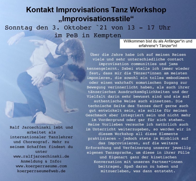 Körperwahrnehmung, Einzelbegleitung, Tanztherapie, Contacts Impro, Freitanz, Shaking, Kurse und Workshops
